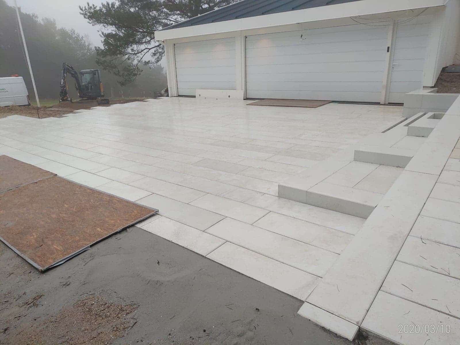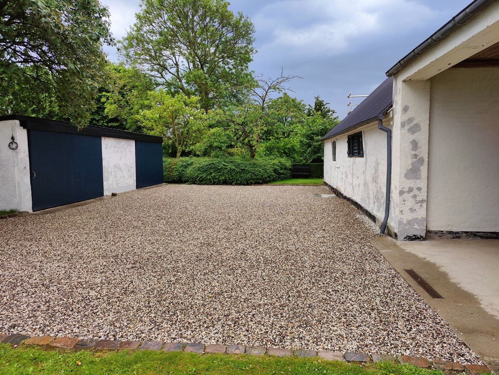 - Indkørsel: Skab en indbydende og holdbar indkørsel med sten, fliser eller grus.