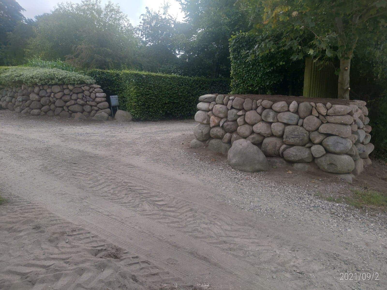 - Kampestensmure: Kampesten, også kendt som natursten, giver en rustik og autentisk følelse til haven.